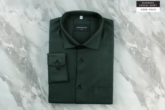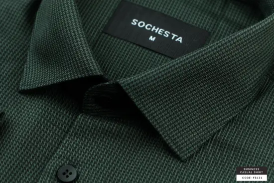 Teal Blue Mini Herringbone Wool Finished Cotton Shirt(FS133)