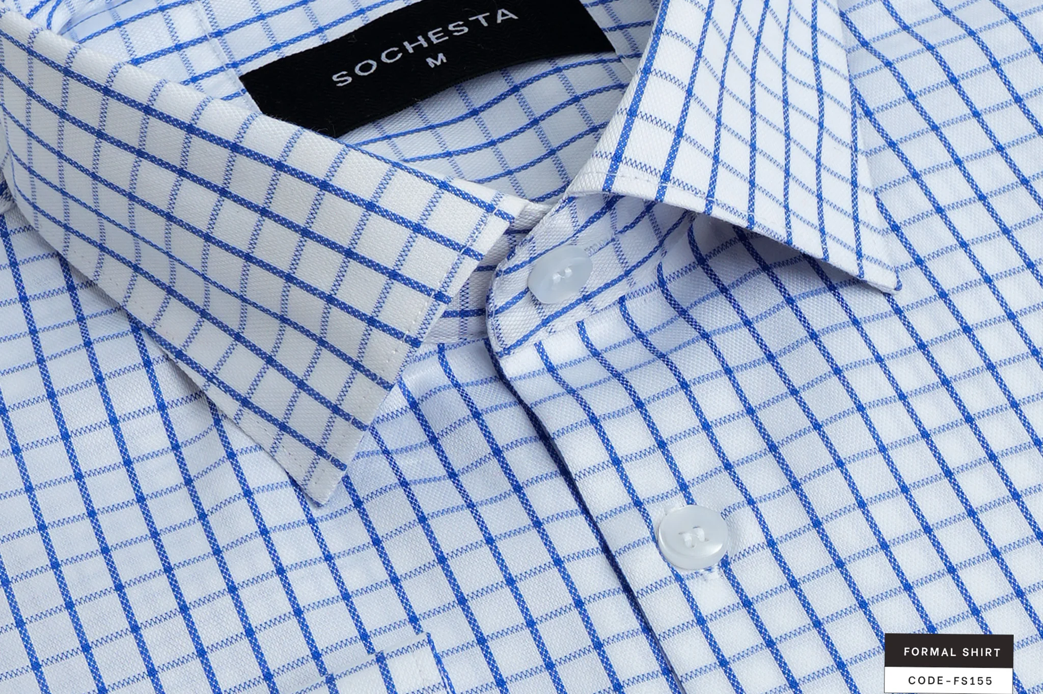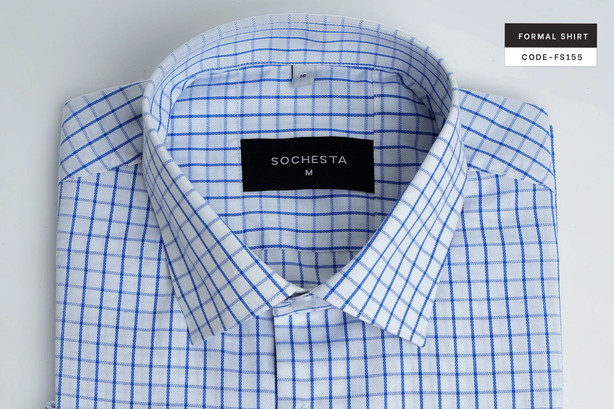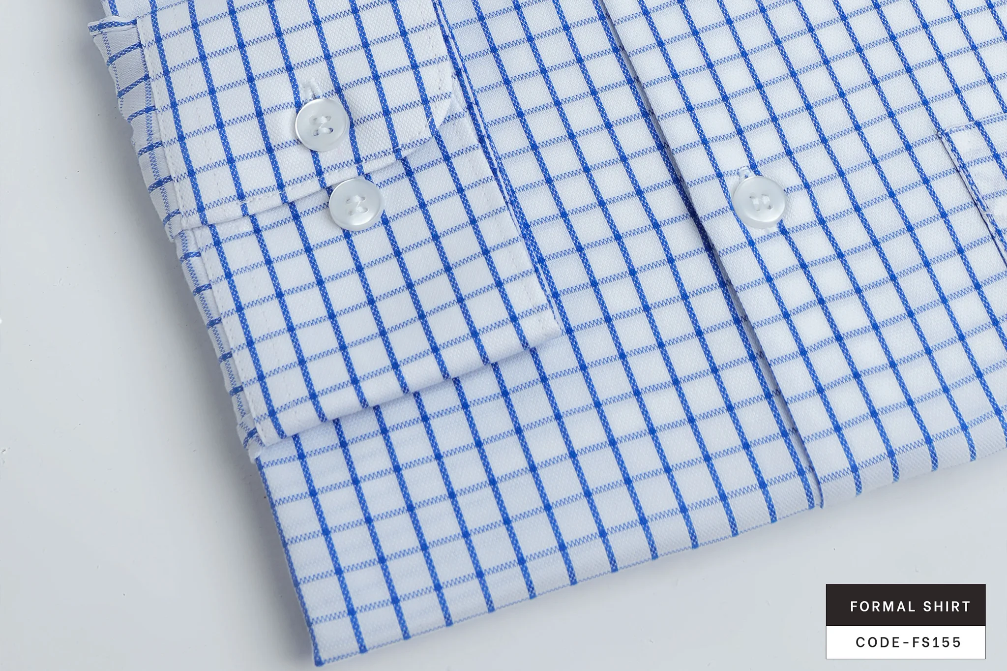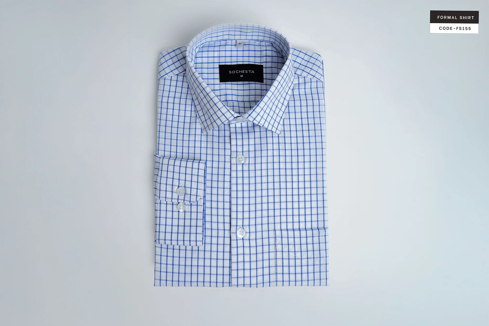Step into sharp style with this crisp white formal shirt featuring a classic blue grid check pattern. Tailored for a modern fit, it blends timeless design with everyday comfort — perfect for the office, meetings, or leveling up your smart-casual game.