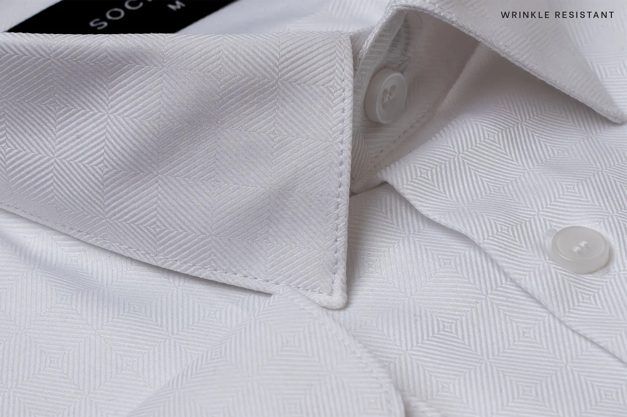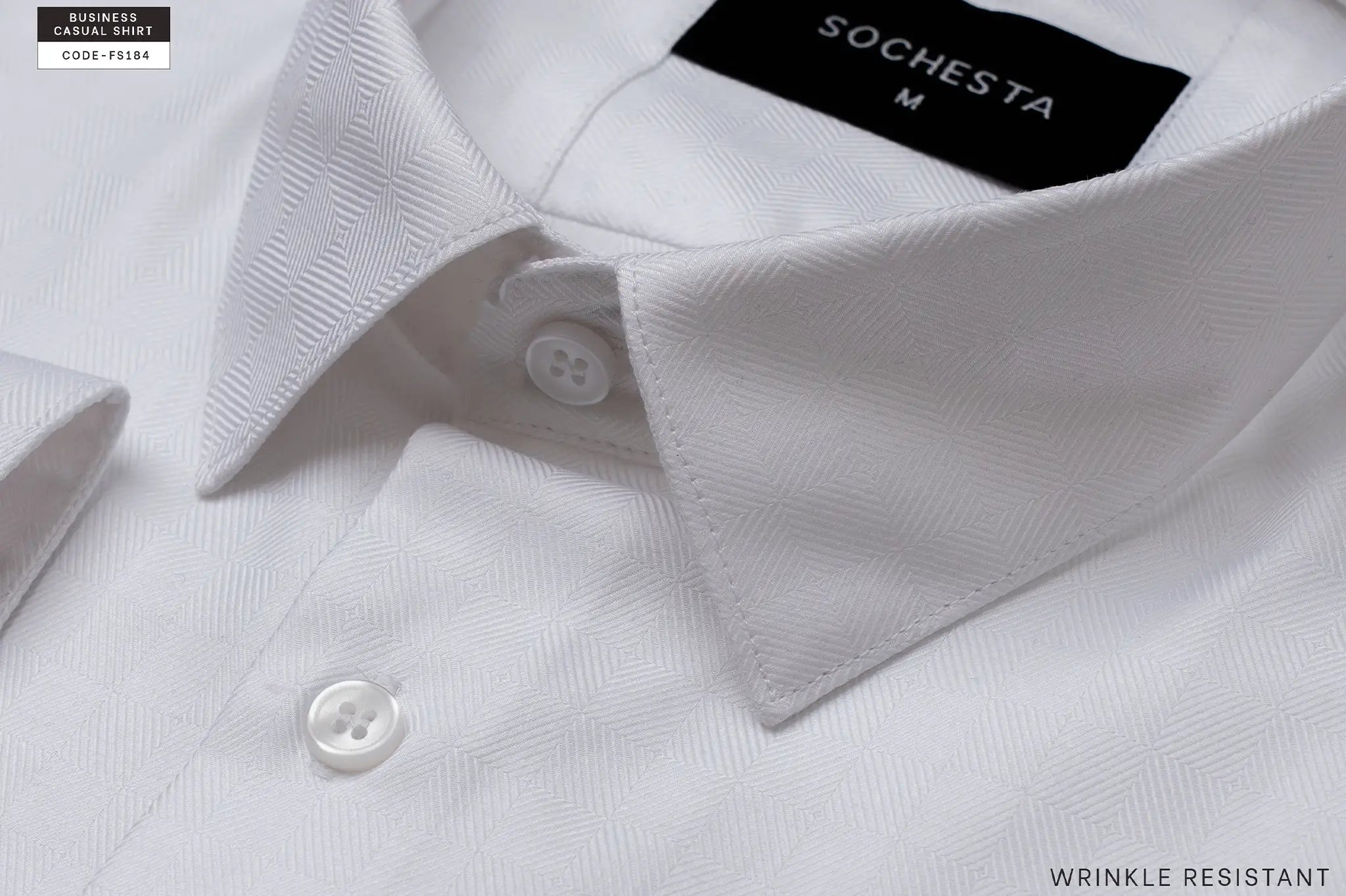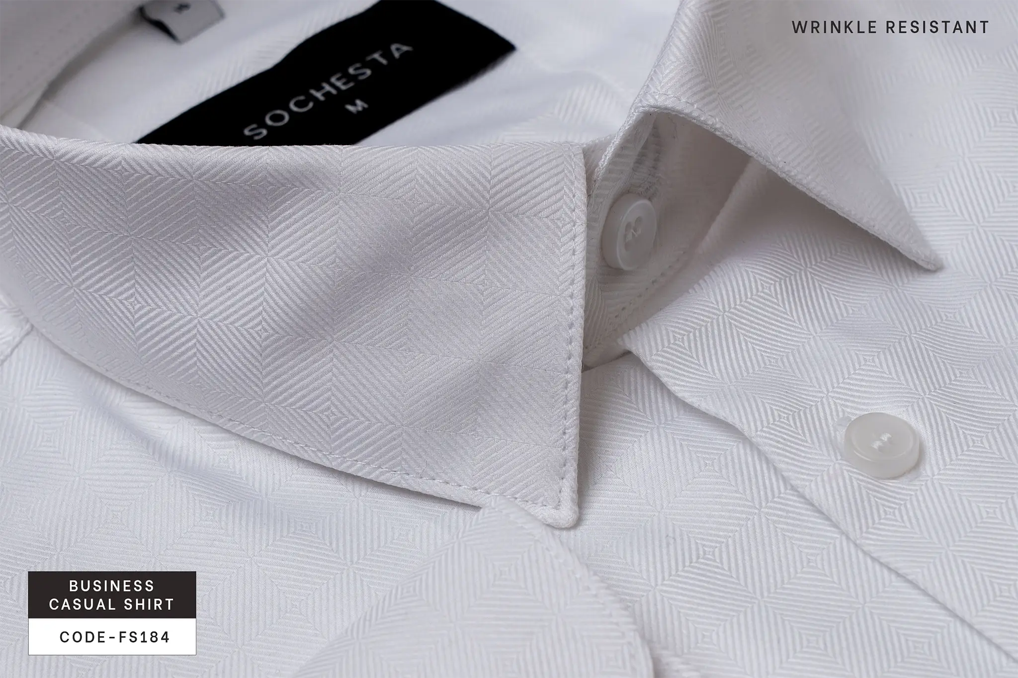 Elevate your formal wardrobe with this Executive Series shirt, crafted from fine cotton featuring a modern geometric weave. The intricate pattern adds depth and character while maintaining a refined, office-appropriate look. Designed for all-day comfort, the fabric offers a smooth, breathable feel with a crisp structure that keeps you looking sharp. Finished with high-quality buttons and precise stitching, this shirt delivers both durability and sophistication. Perfect for business meetings, office wear, and smart casual events — a versatile piece that brings subtle style without being loud.