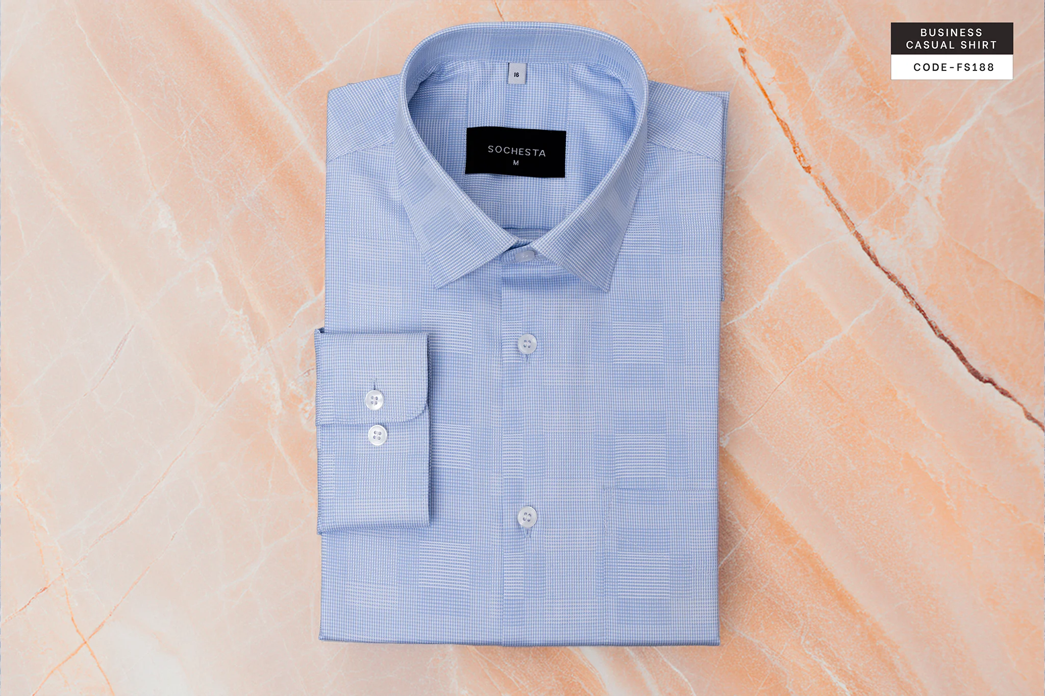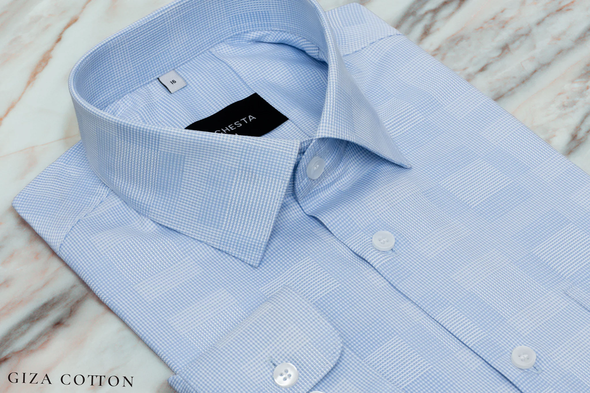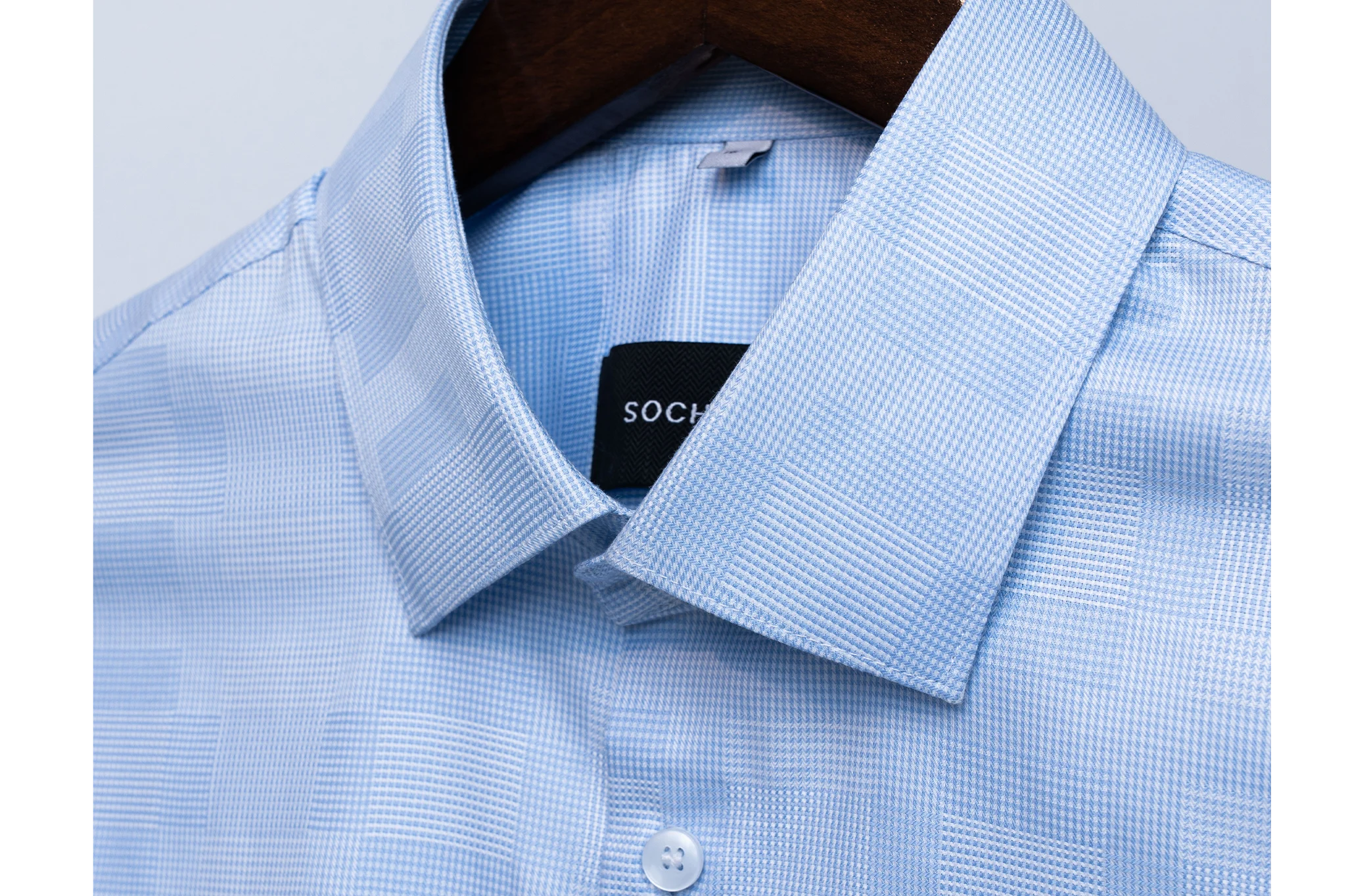 The finely detailed micro weave texture adds depth and sophistication to the subtle pale sky hue, creating a clean yet distinctive look perfect for business and formal occasions. Designed with a sharp executive collar and precision tailoring, it delivers a crisp silhouette and all-day comfort.
