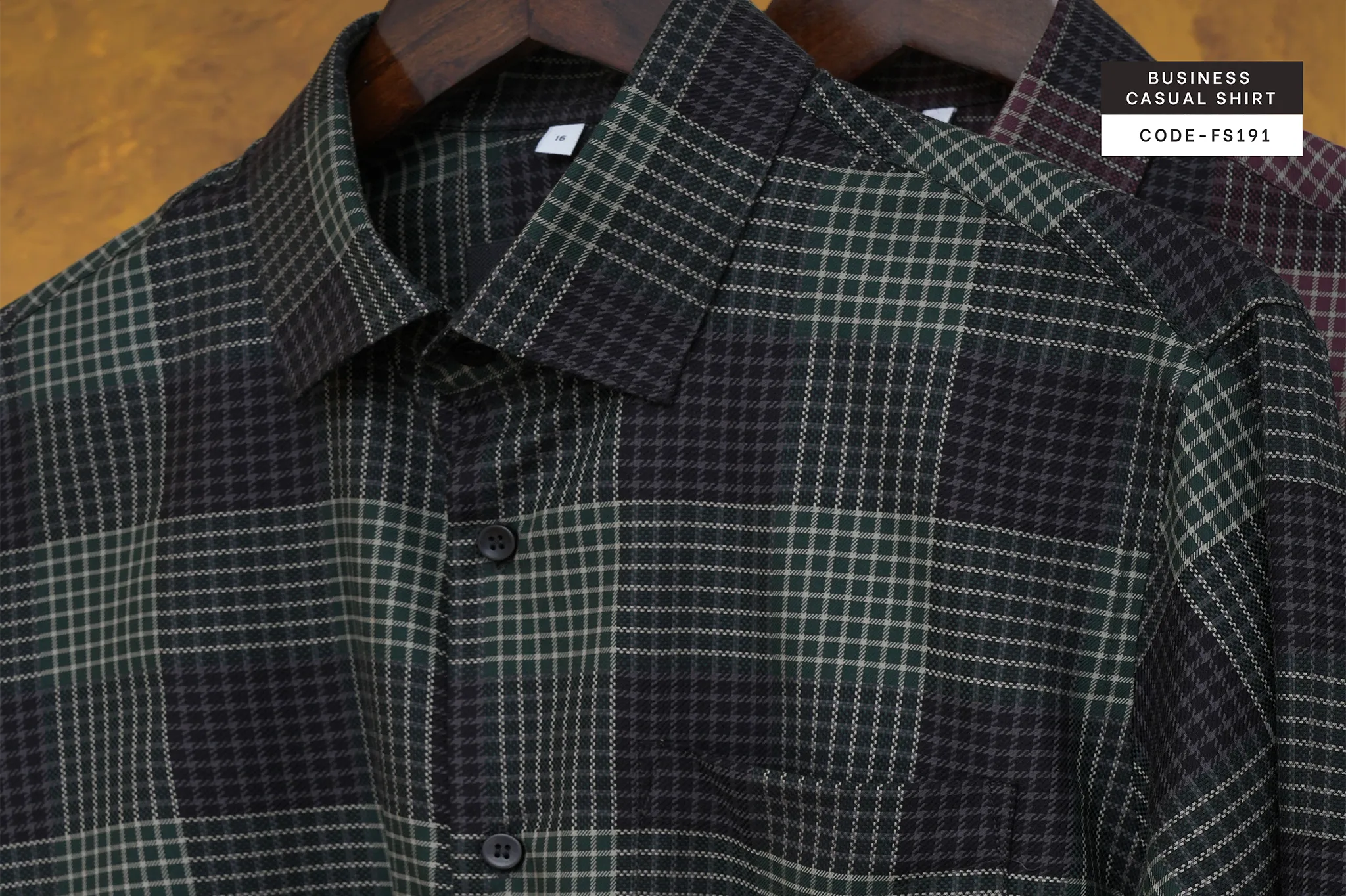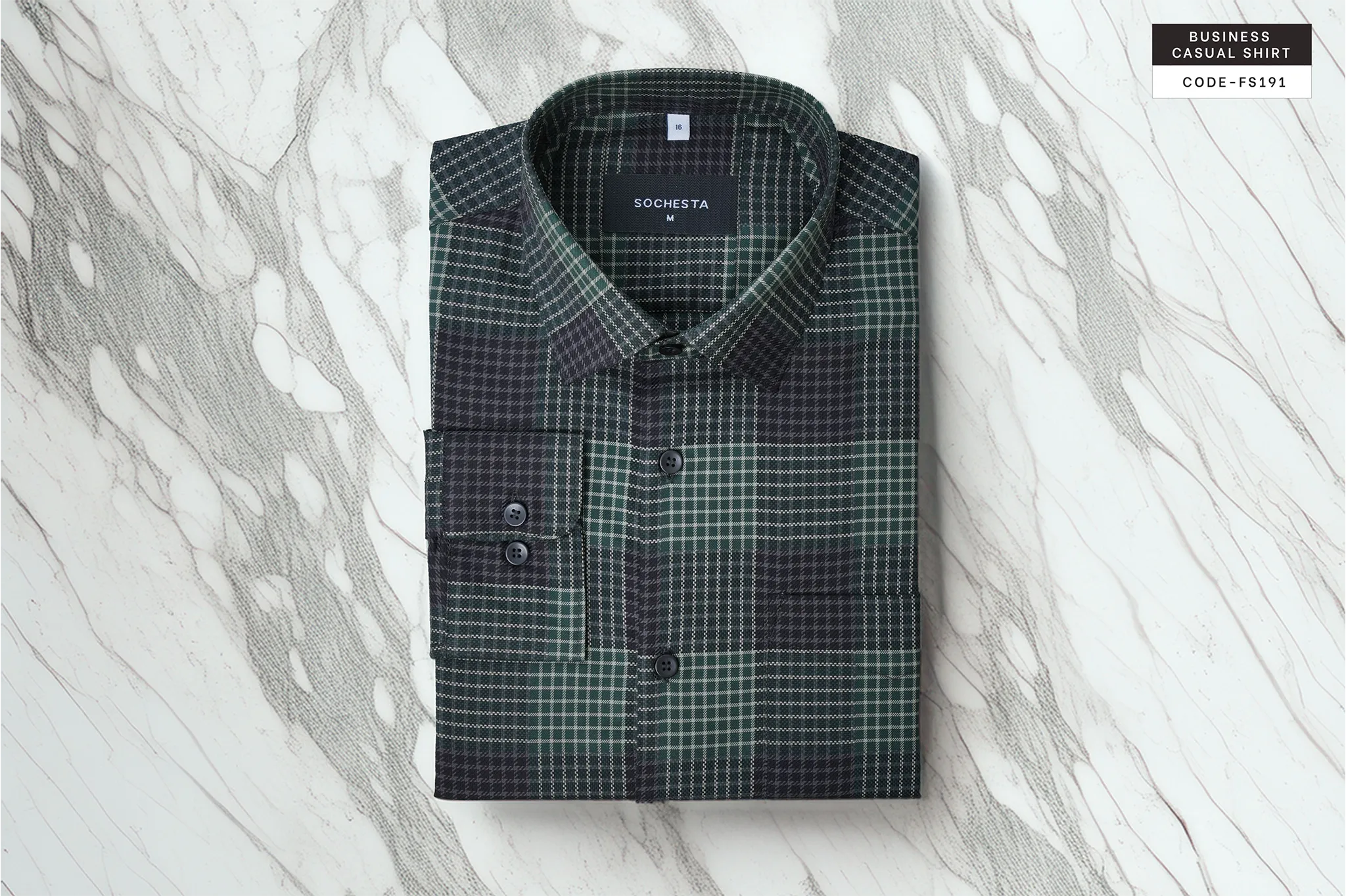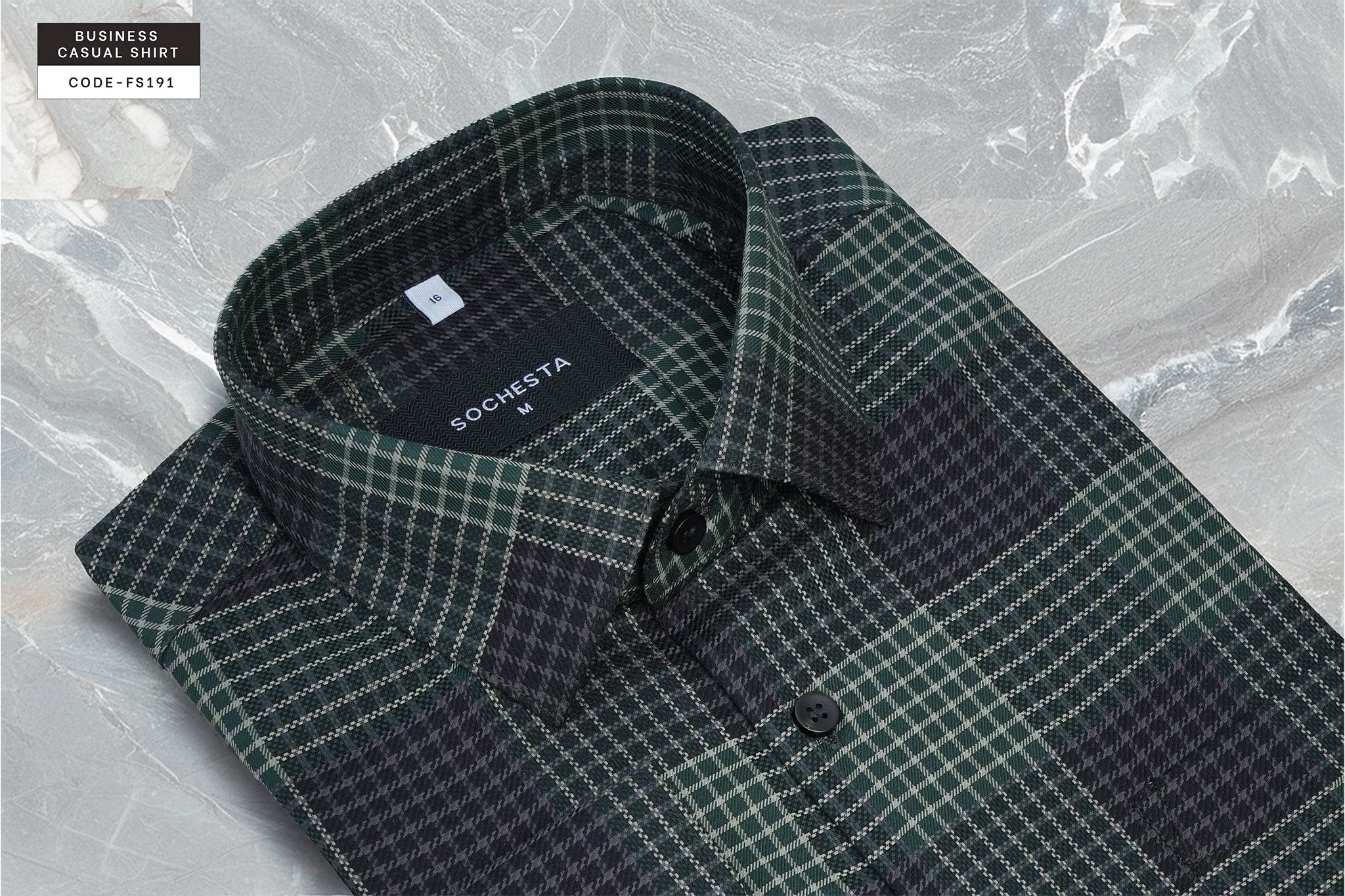 Green–Charcoal Business Plaid Check Shirt (FS191)