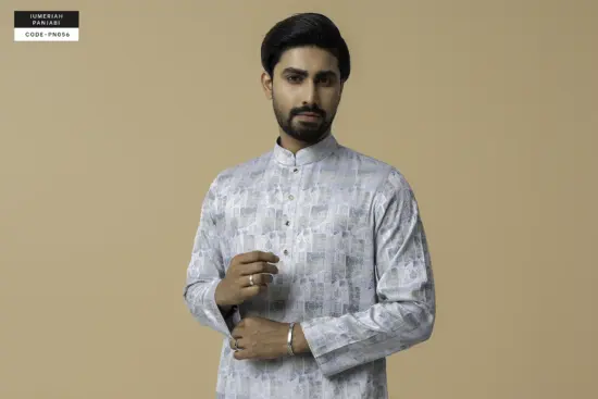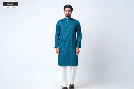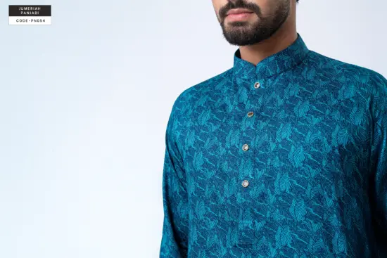 Neon Blue Soft Printed Jumeriah Panjabi(PN054)