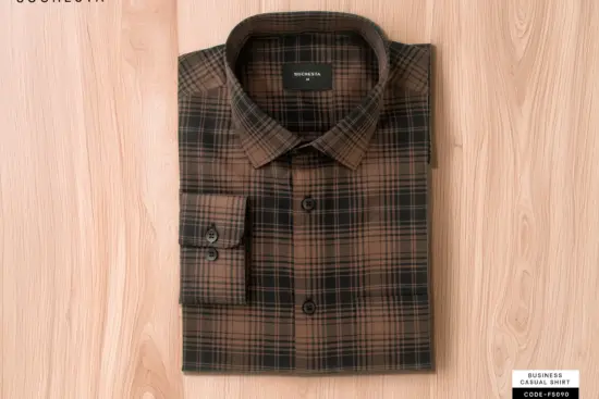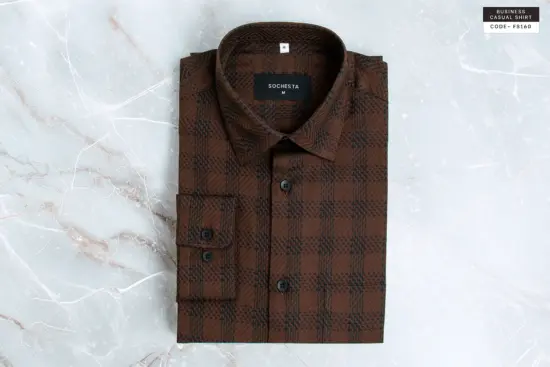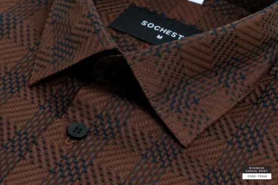 Textured Caramel Brown Weave Check Giza Cotton Shirt(FS160)