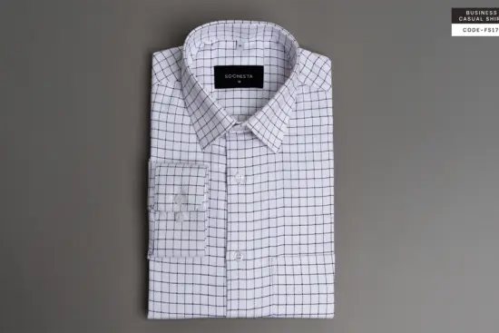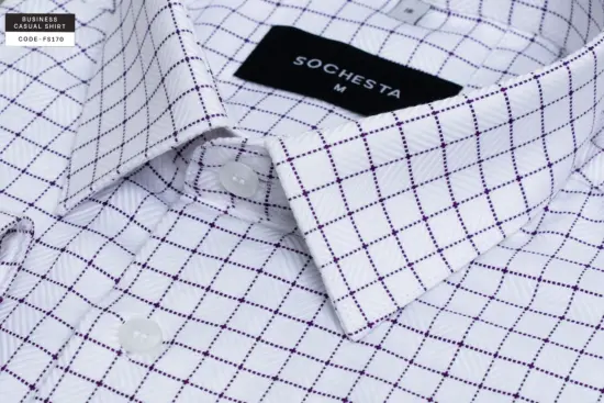 White Snow Grid Dobby Cotton Shirt(FS113)